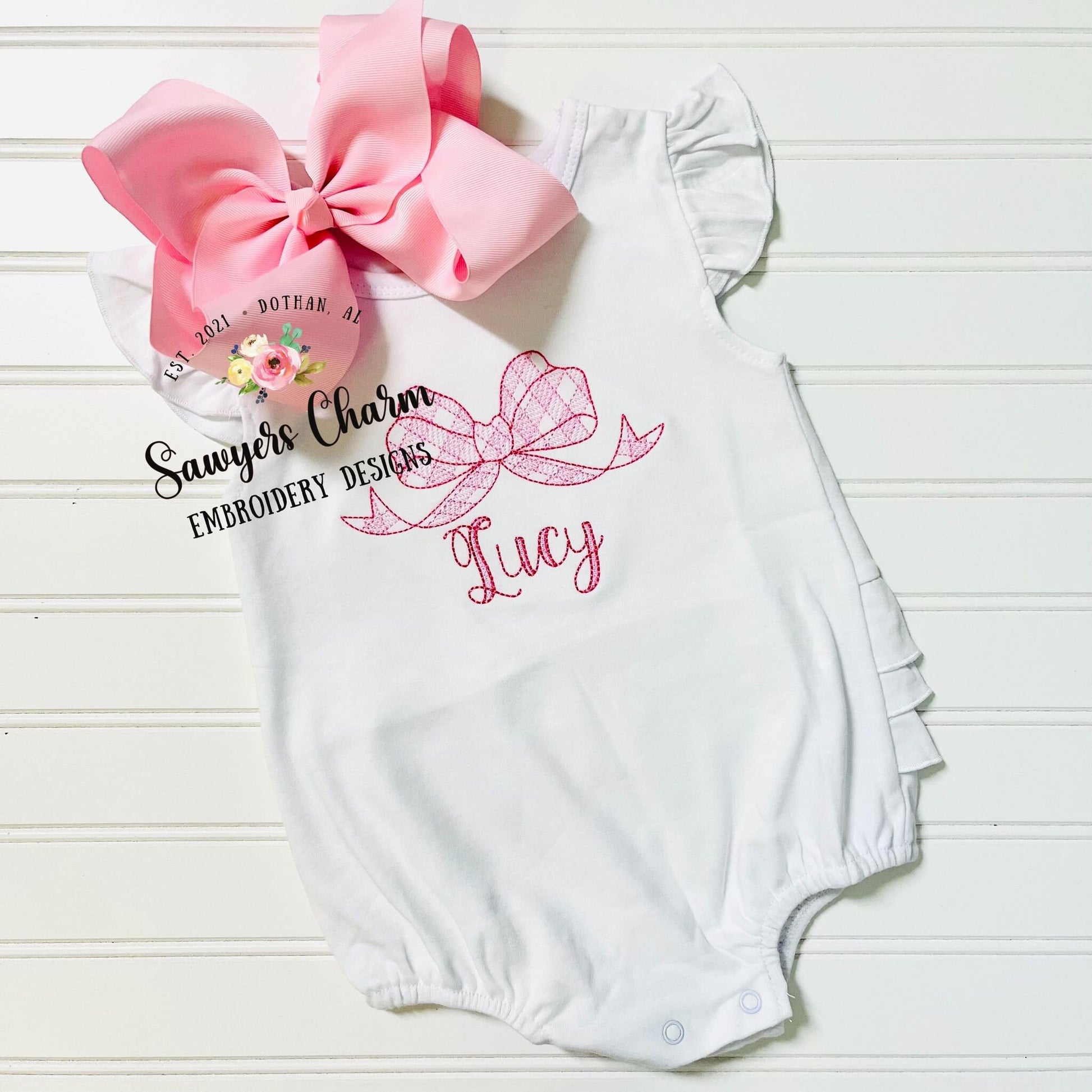Gingham bow sketch stitch/bean stitch machine embroidery design file, quick stitch, vintage stitch, monogram topper, girly, plaid check