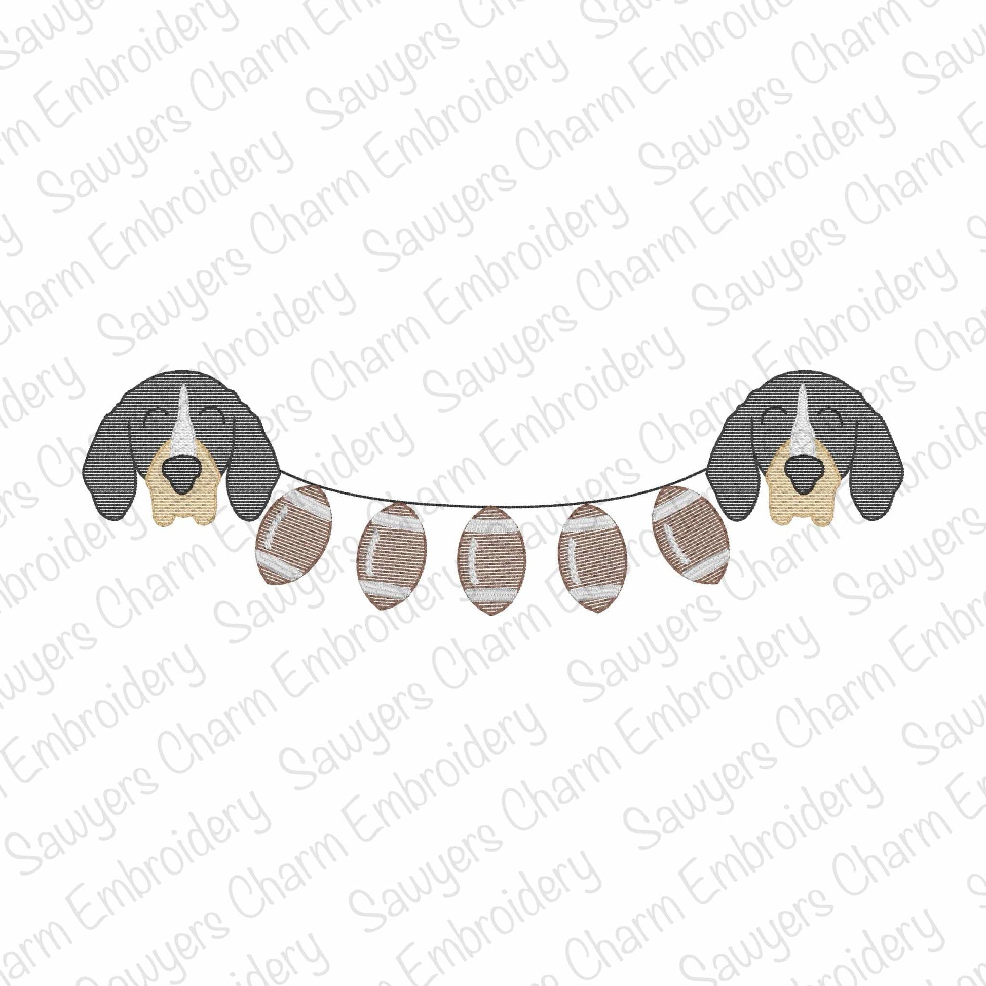 Hound dog mascot footballs bunting banner, sketch stitch machine embroidery design, quick stitch, college university sports