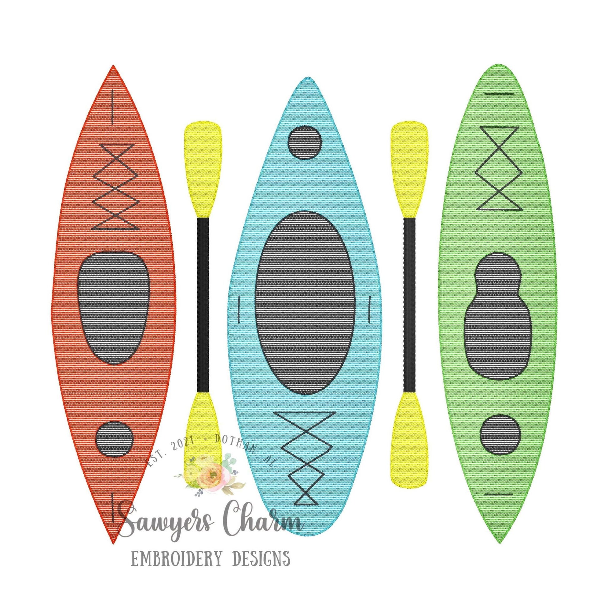 Kayak trio with paddles sketch stitch machine embroidery design file, summer spring nautical beach, lake, paddle boarding, water, boat