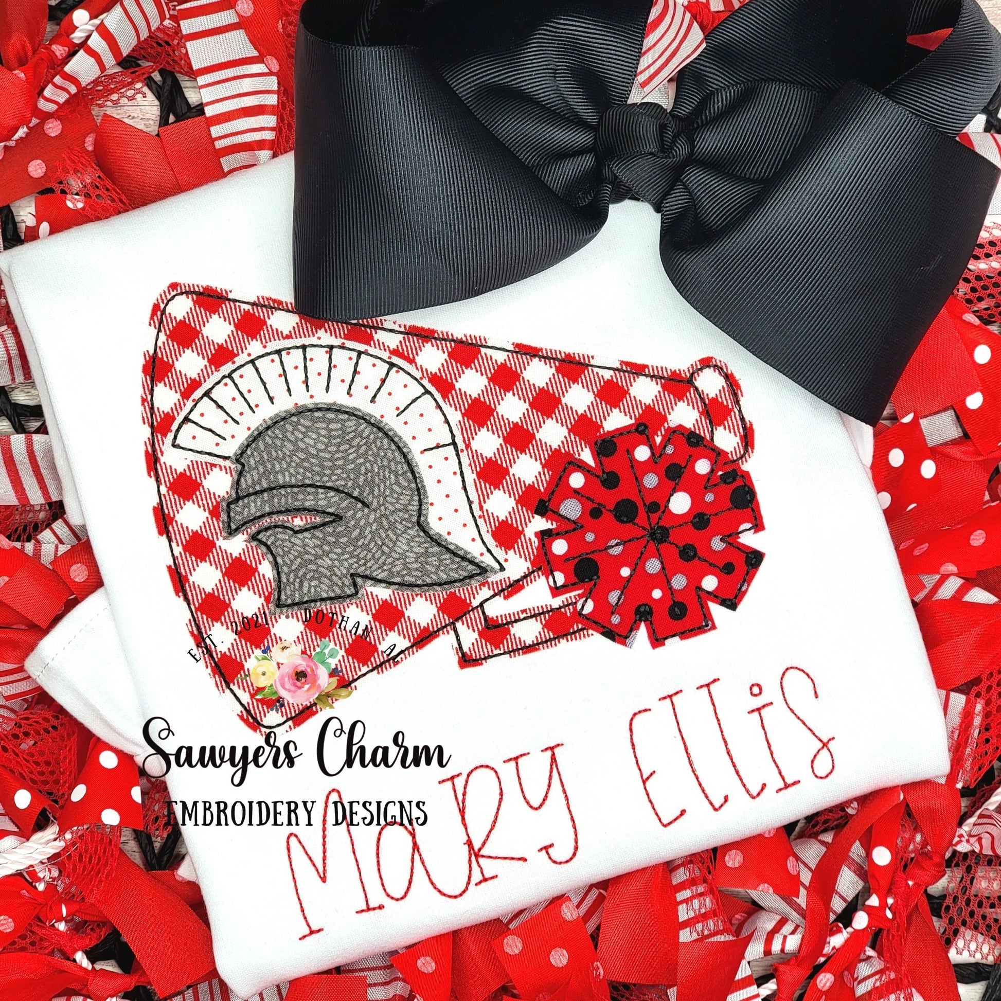 Megaphone pompoms trojan/spartan silhouette bean stitch applique machine embroidery design file, mascot college school university football