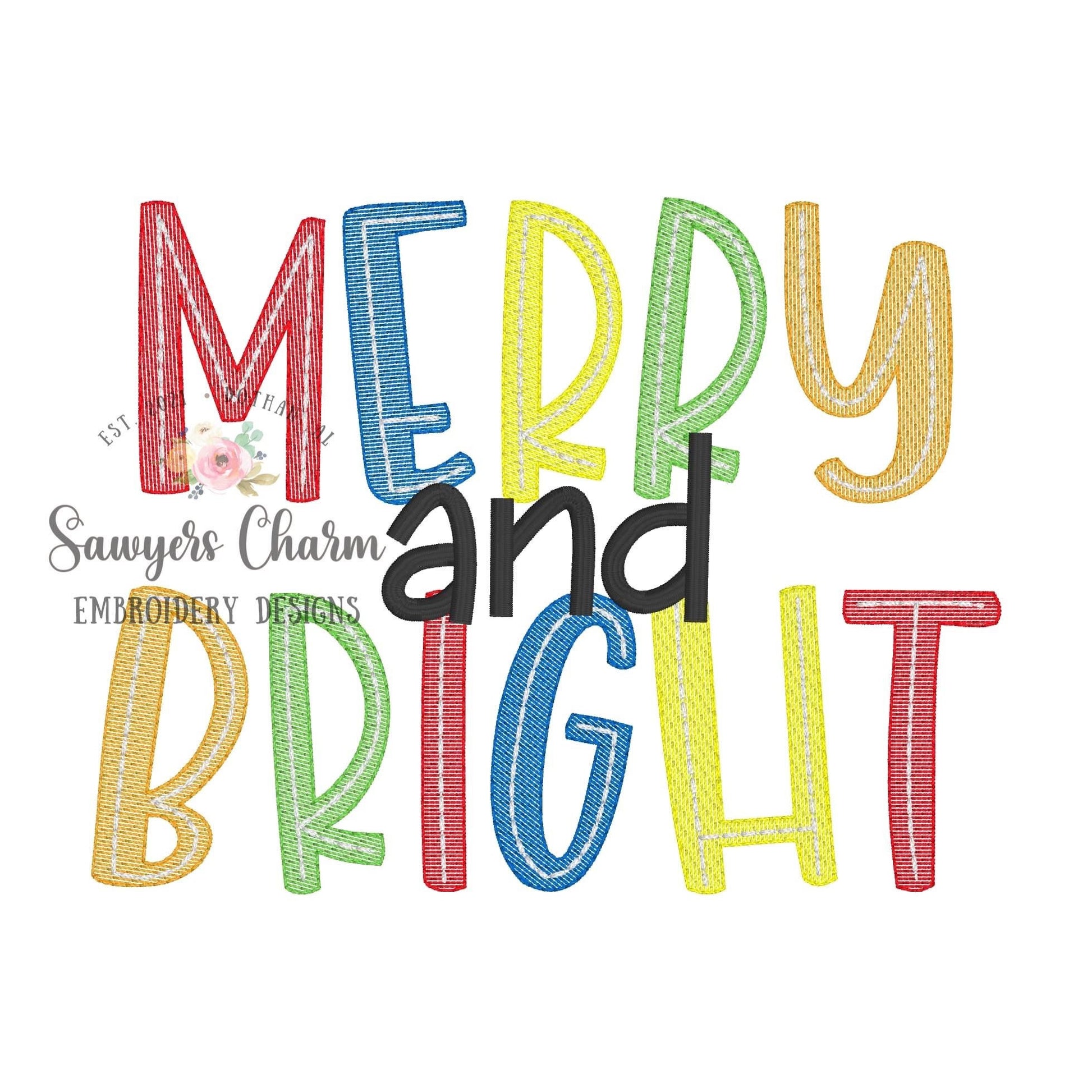 Merry & Bright sketch stitch machine embroidery design file, quick stitch, Christmas, holidays, holly jolly, santa claus, ho ho ho