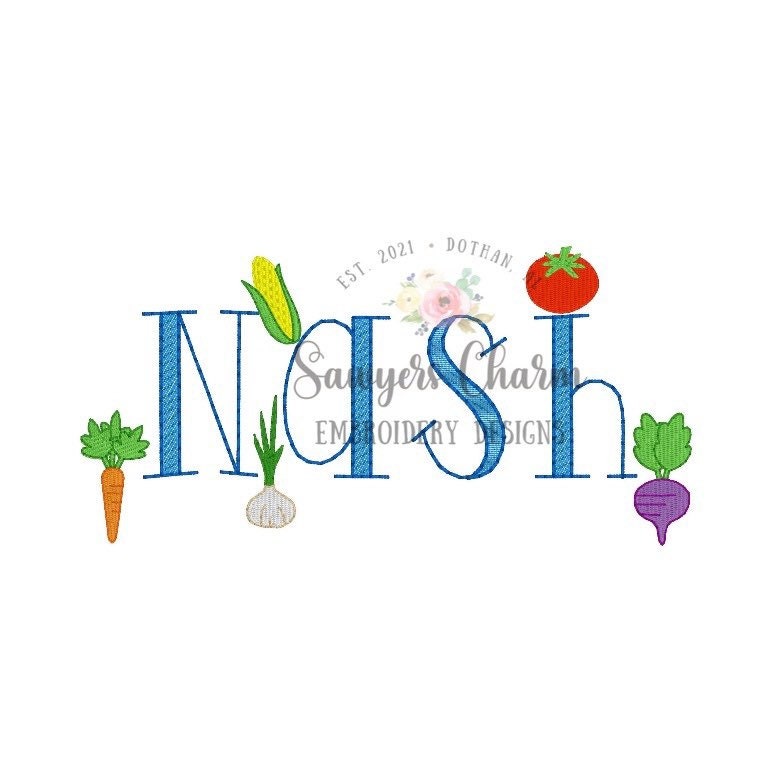This embroidery file comes in several sizes. Some of the veggies are as small as .75" and go up to 2.5". These are a fill stitch mini embroidery design. These come in several different sizes in each veggie. :) Perfect for names or monograms.