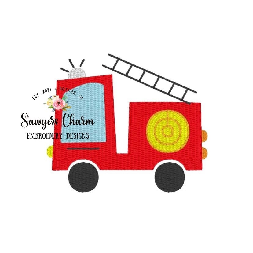 Mini fire truck fill stitch machine embroidery design file, transportation, perfect for monograms, quick stitch, first responder, fire hose