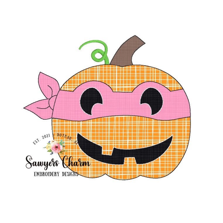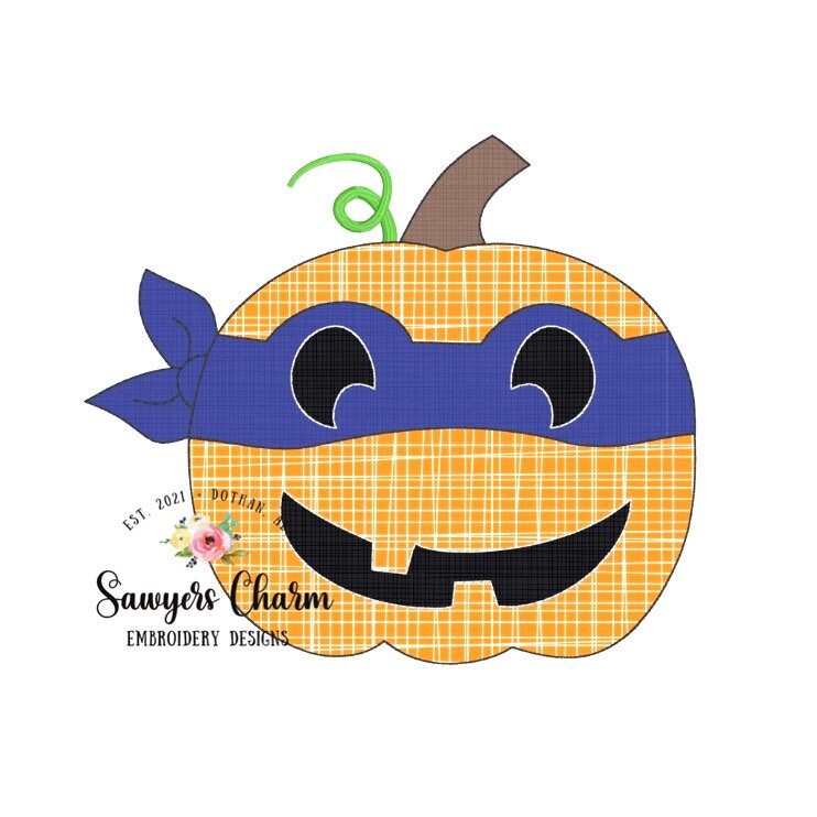 Ninja Superhero jackolantern pumpkin, bean stitch applique, embroidery design file, fall halloween, turtle hero, mask, quick stitch