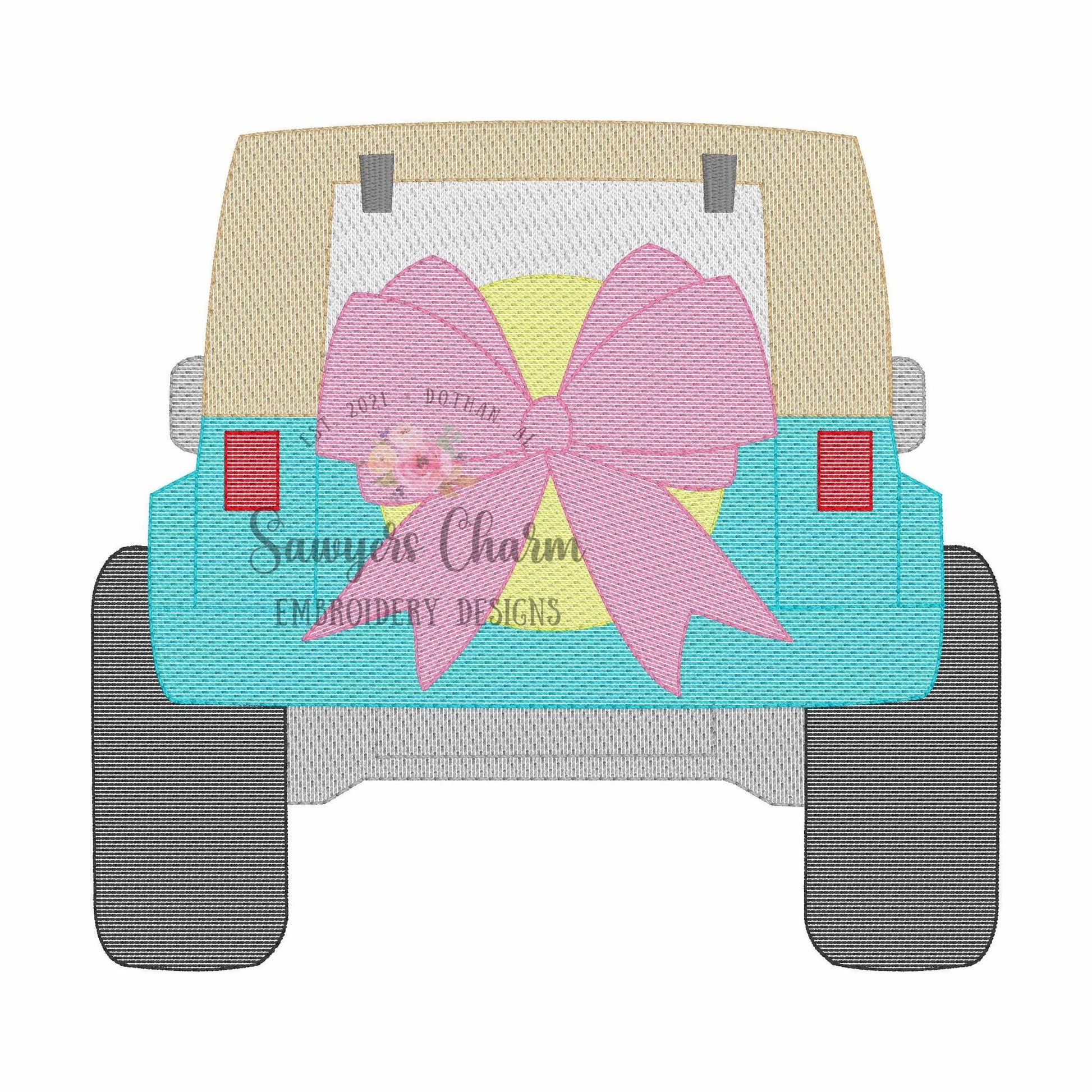 Off Road SUV vehicle truck with coquette bow sketch stitch, machine embroidery design file, transportation, mudding, beach summer, beach
