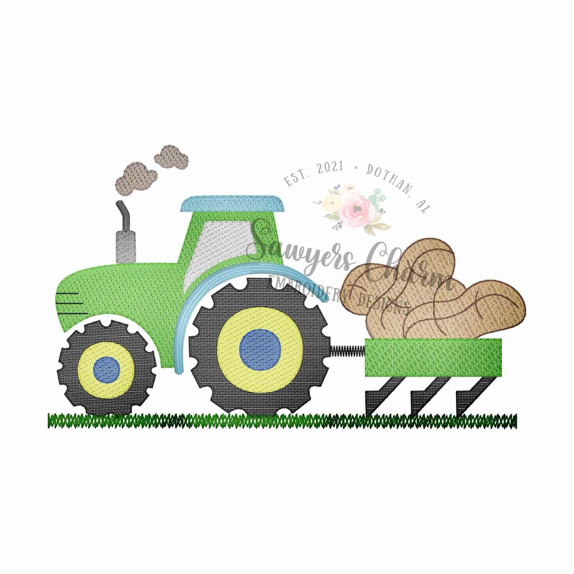 Peanut tractor sketch stitch machine embroidery design file, National Peanut Festival, fall harvest, farmer, trailer, farming