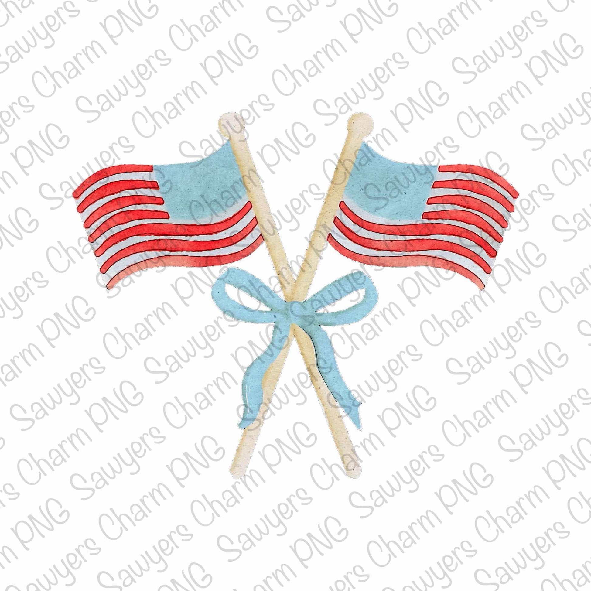 PNG watercolor Patriotic American flags with coquette bow Printable file/Sublimation/Heat Transfer Design/Digital Clipart, fourth of July