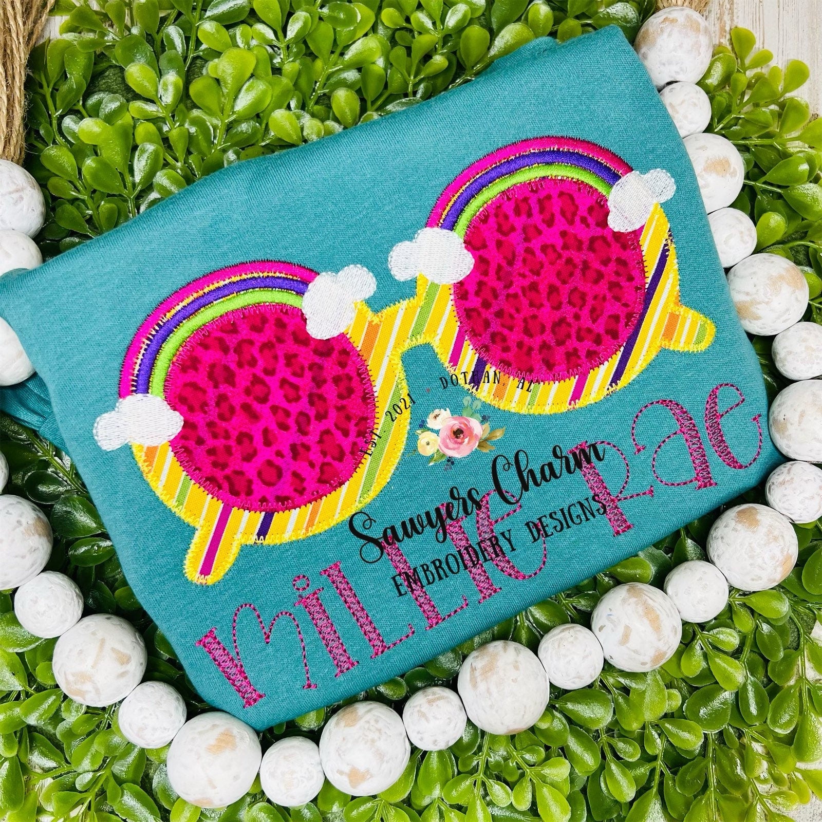 Rainbow zig zag sunglasses vintage/retro applique machine embroidery design file, sunnies, quick stitch, summer shades