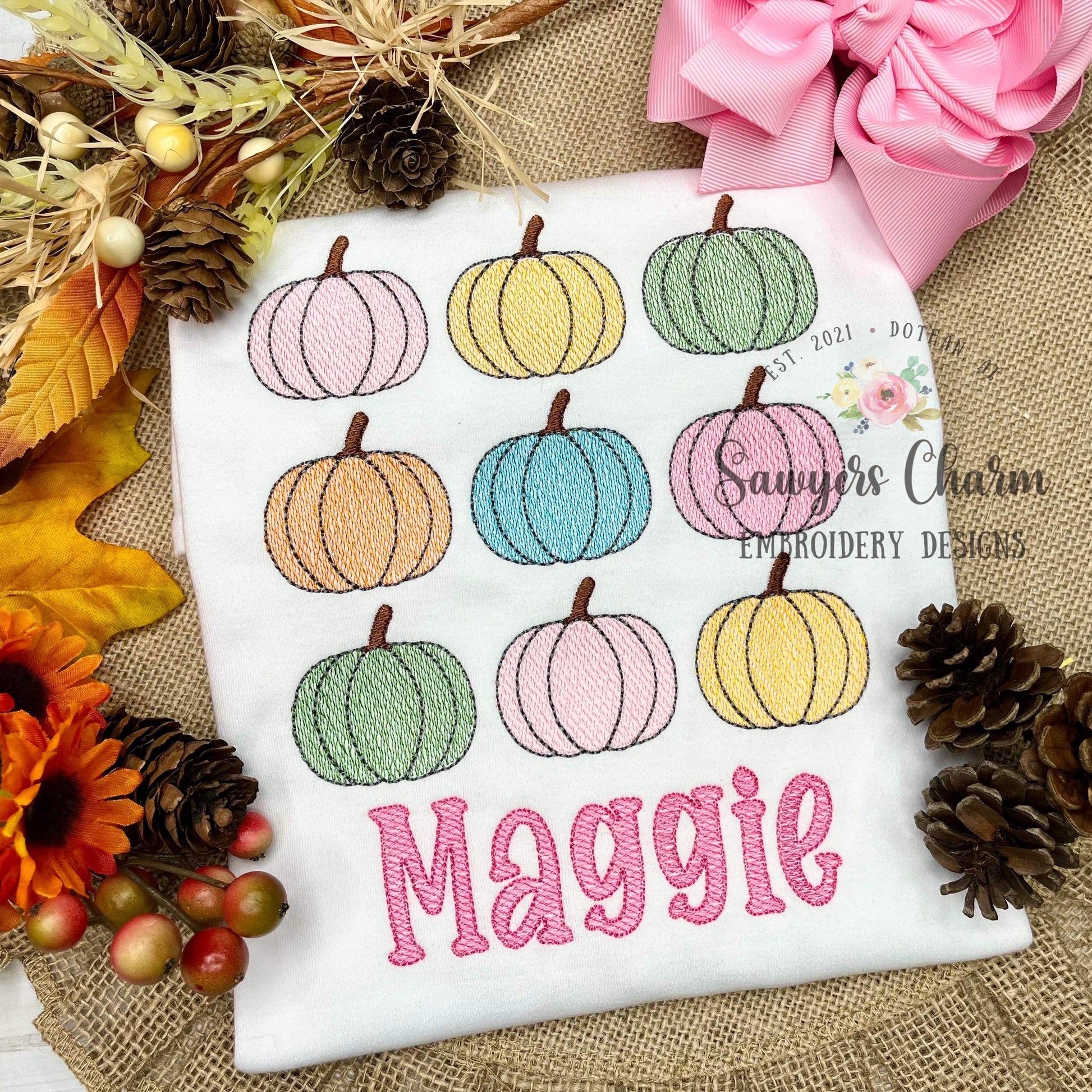 Retro pumpkins 9 in a row sketch stitch embroidery design file, fall, halloween, fall leaves, pumpkin patch, quick stitch, groovy