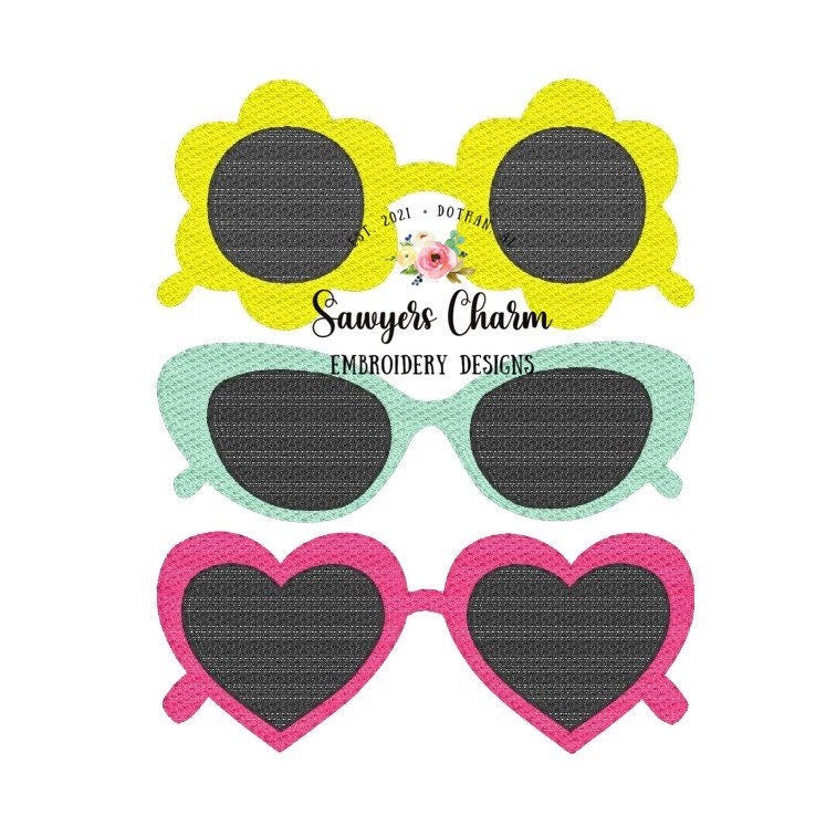 Retro summer sunglasses trio sketch stitch machine embroidery design file, sunnies, shades, vintage, quick stitch, summer fun