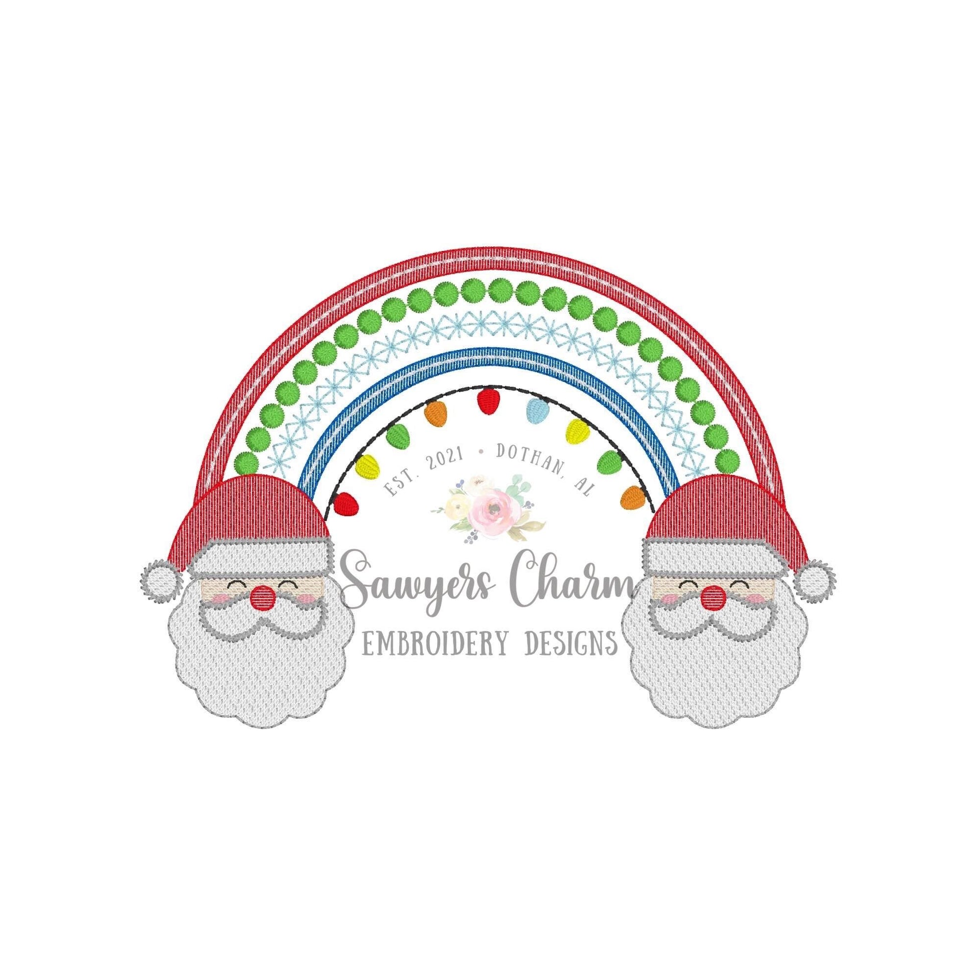 Santa Claus rainbow with lights sketch stitch machine embroidery design file, quick stitch, Merry Christmas, happy holidays, holly jolly