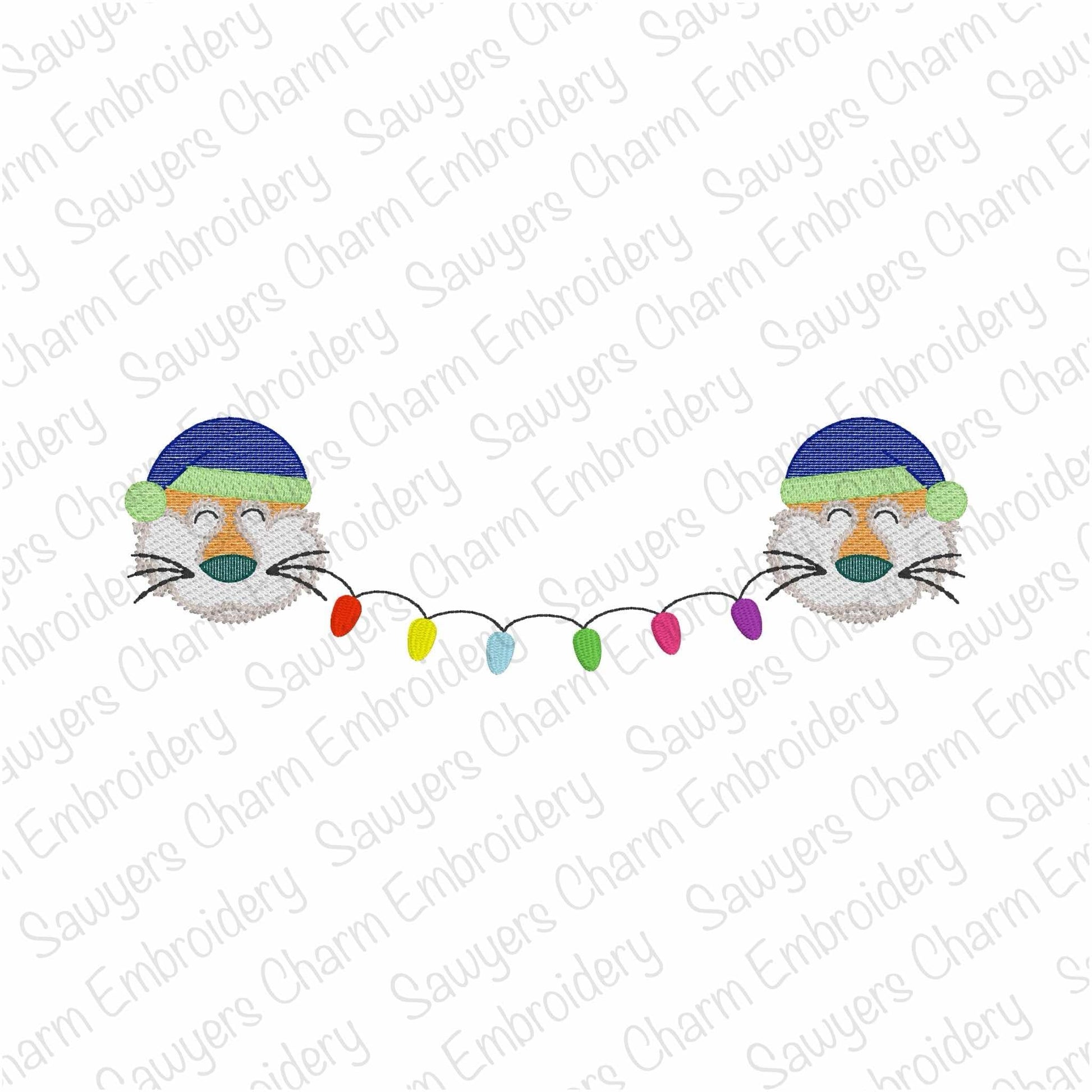 Santa Tiger mascot with Christmas lights bunting banner sketch stitch machine embroidery design, zoo animal, quick stitch, sports, football