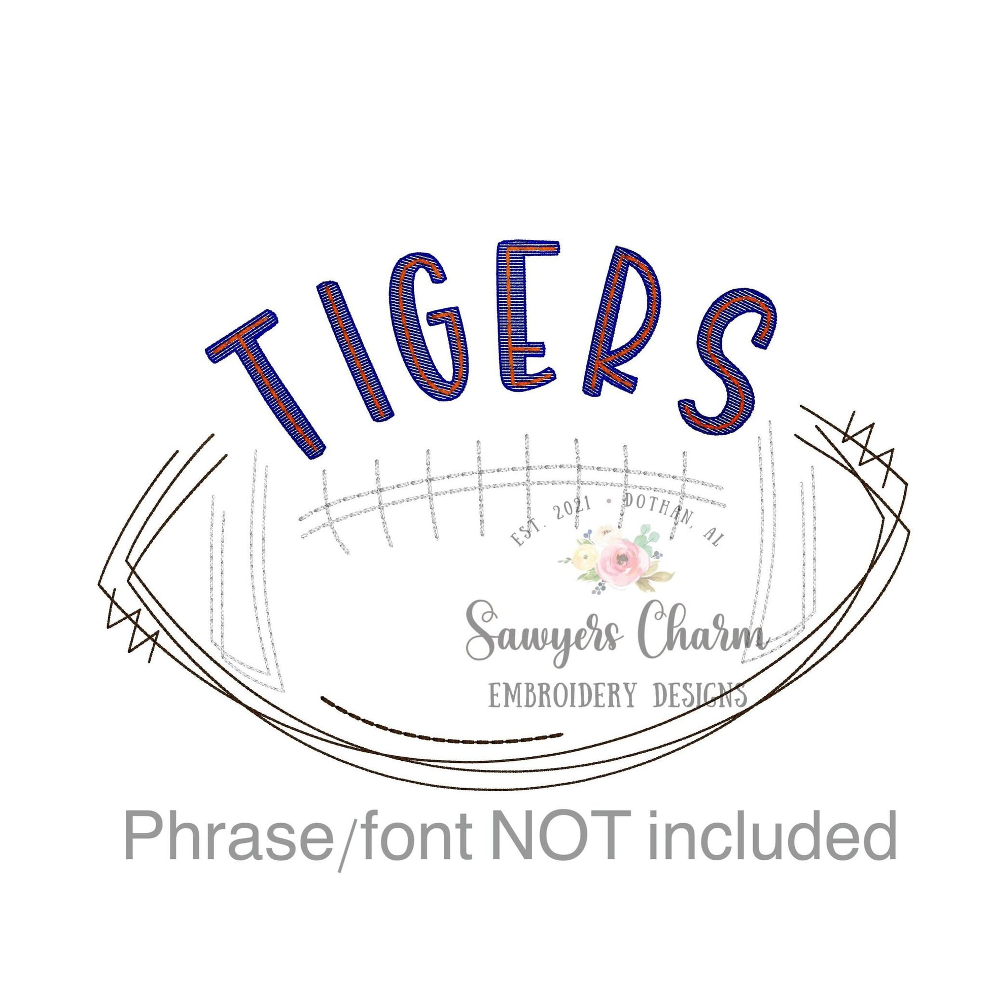 This design comes in several sizes.....4x4 hoop, 5 inches wide, 6 inches wide, 5x7, 8x8 hoop, 9 inches wide, and 10 inches wide. This is a bean stitch embroidery design and is perfect for adding your name, or favorite team name to the top of the football.