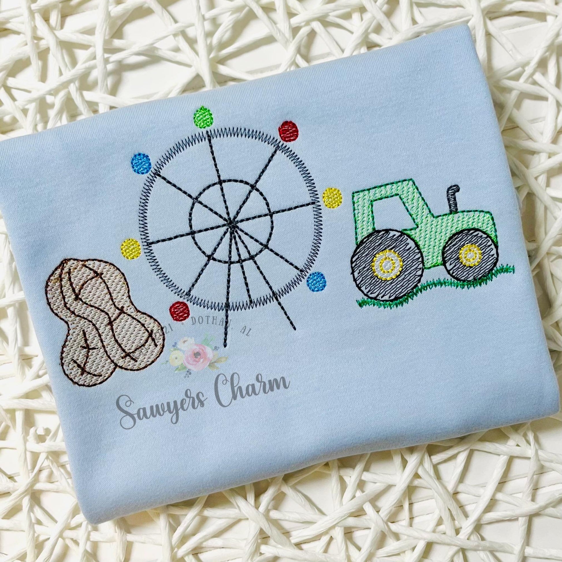 Tractor peanut ferris wheel sketch stitch machine embroidery design file, bean stitch details, farm harvest, dirt hauler, festival, fair