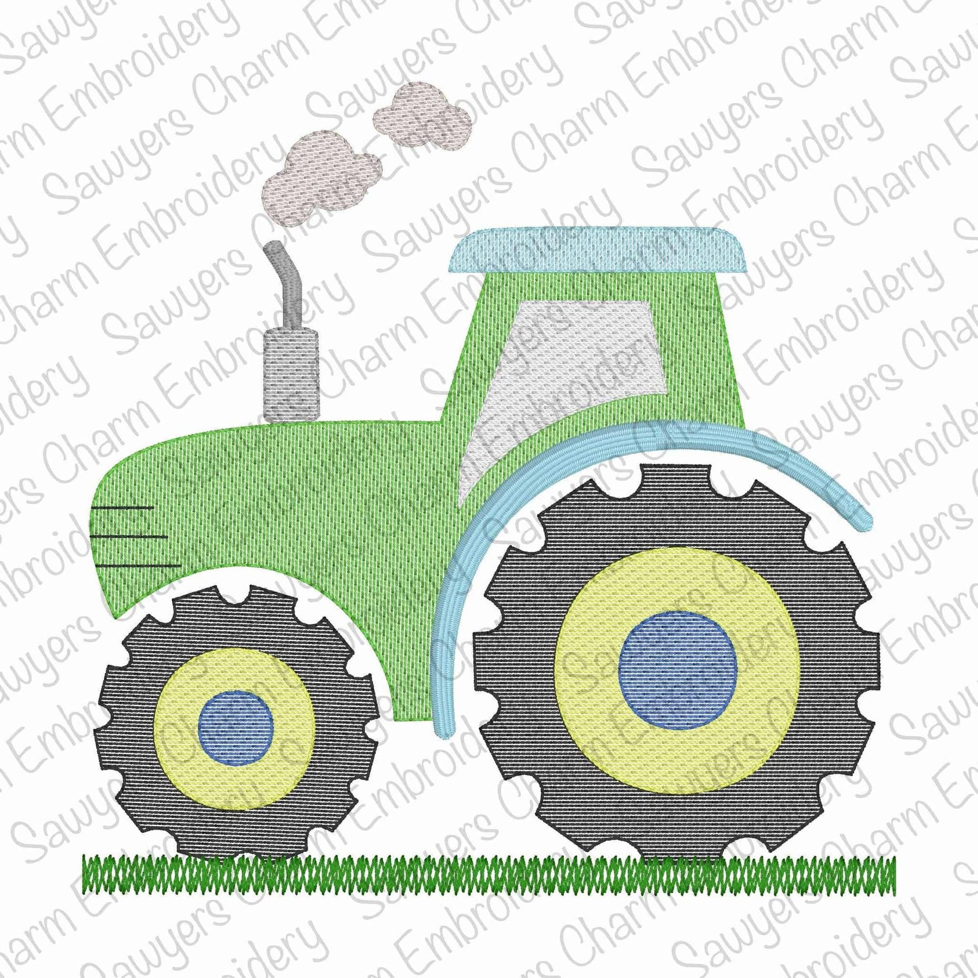 Tractor with smoke sketch stitch machine embroidery design file, quick stitch, spring harvest, farm, farmer, field