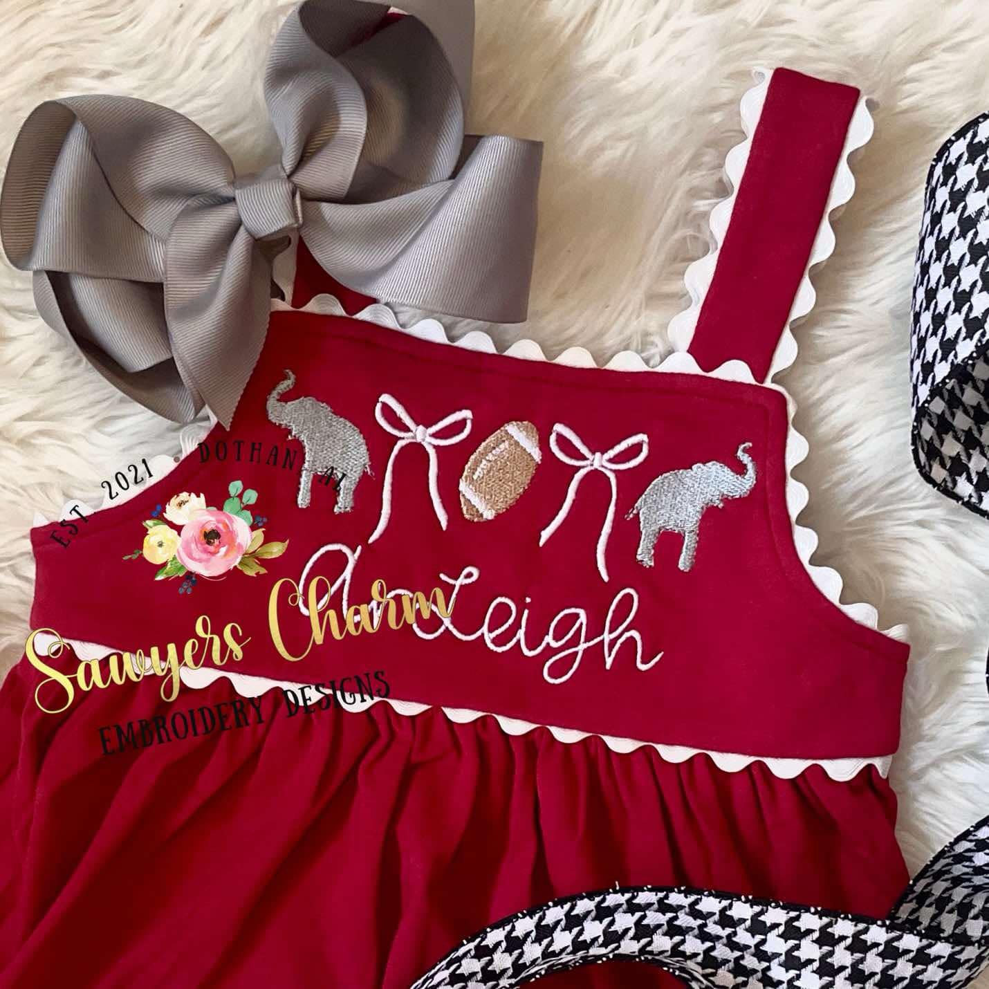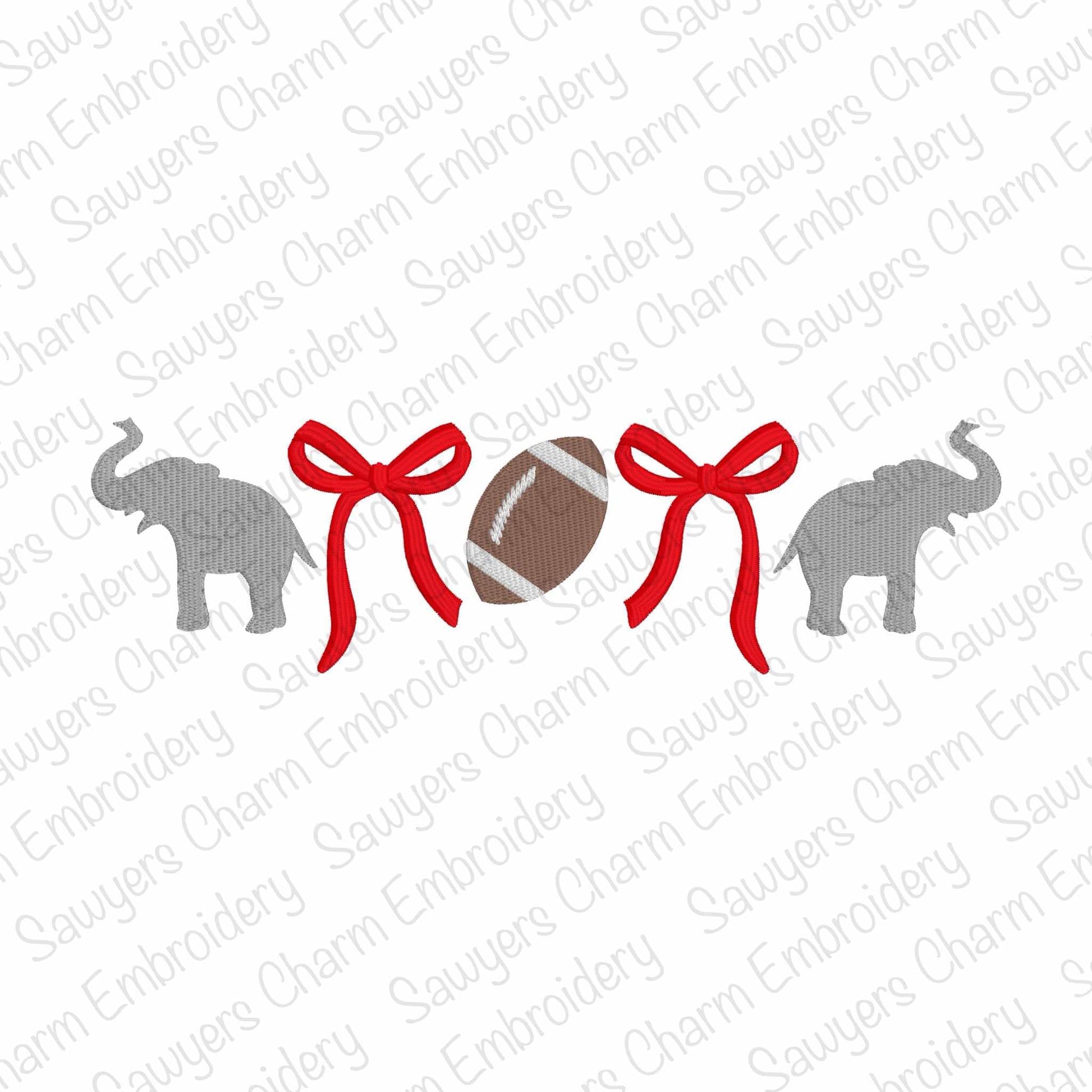 Trendy coquette bows elephant, football fill stitch, machine embroidery design file, fall sports, college mascot, larger sizes, cheer, fan