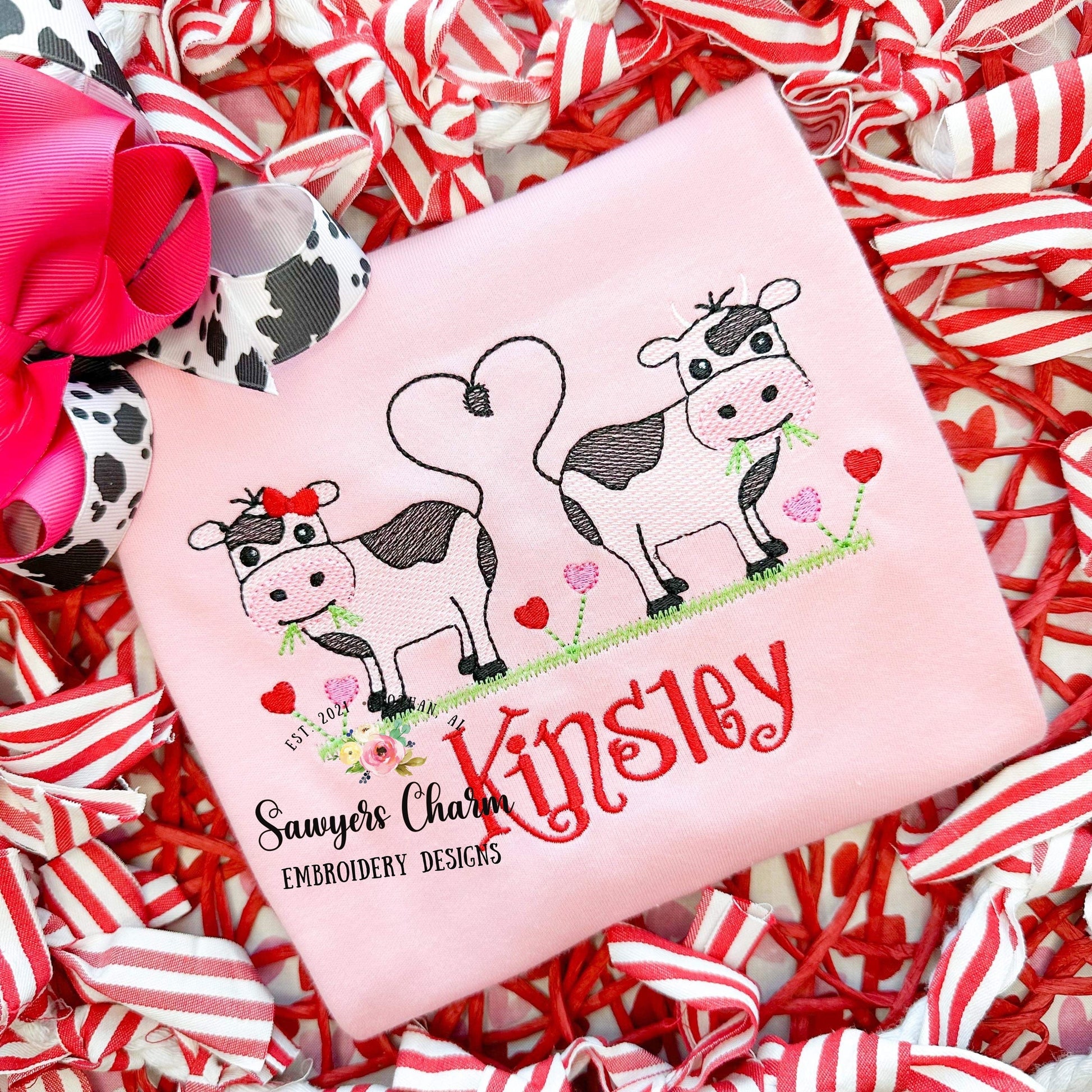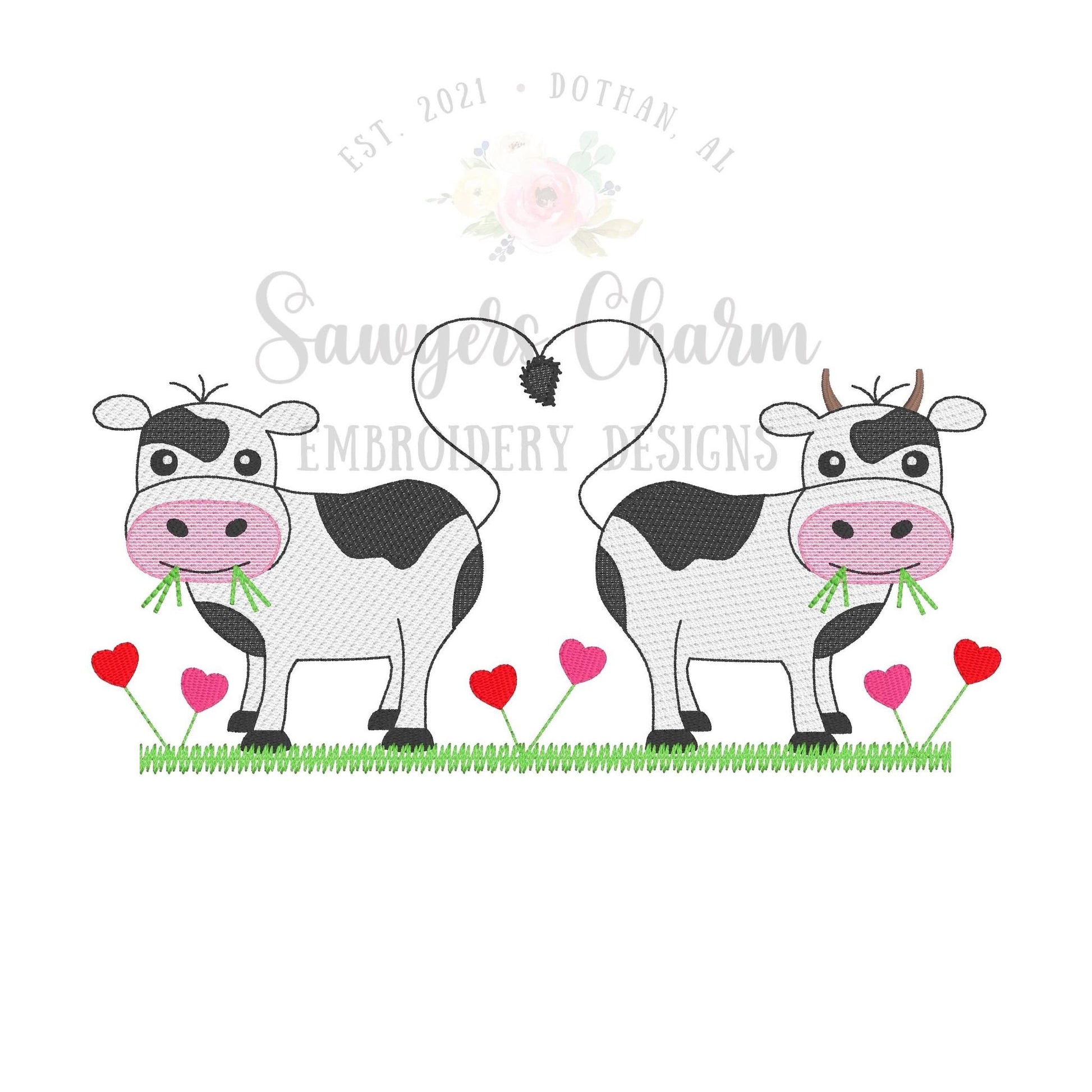 Valentine's Day Cows with hearts/flowers sketch stitch machine embroidery design file, quick stitch, bean stitch, love, farm animals, XOXO