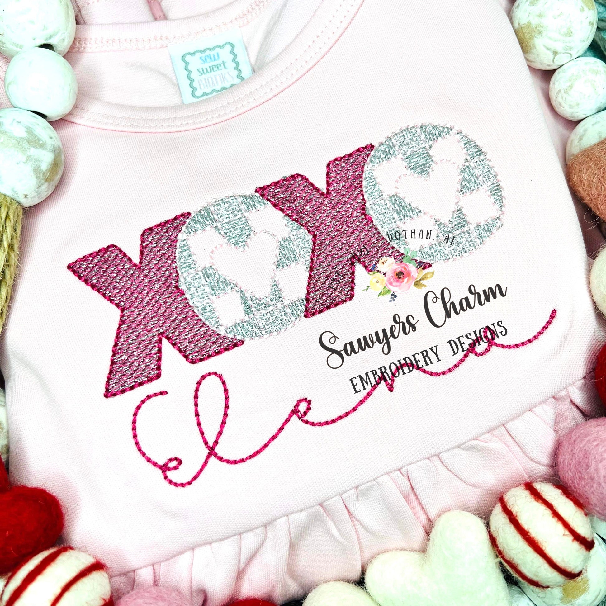 XOXO gingham heart sketch stitch, machine embroidery design file, winter, Valentine's Day, love, hugs and kisses, quick stitch, plaid check